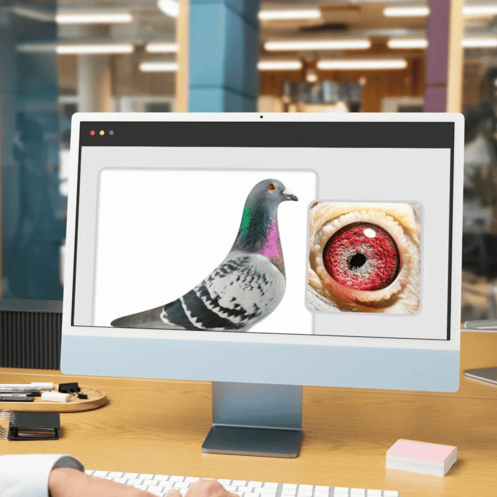 Do you want to print your pigeonphotos yourself, or have a very personalized end product in mind? Then this package is the one for you. It includes a Pigeonphoto and an Eye-photo, both delivered in a Digital format.